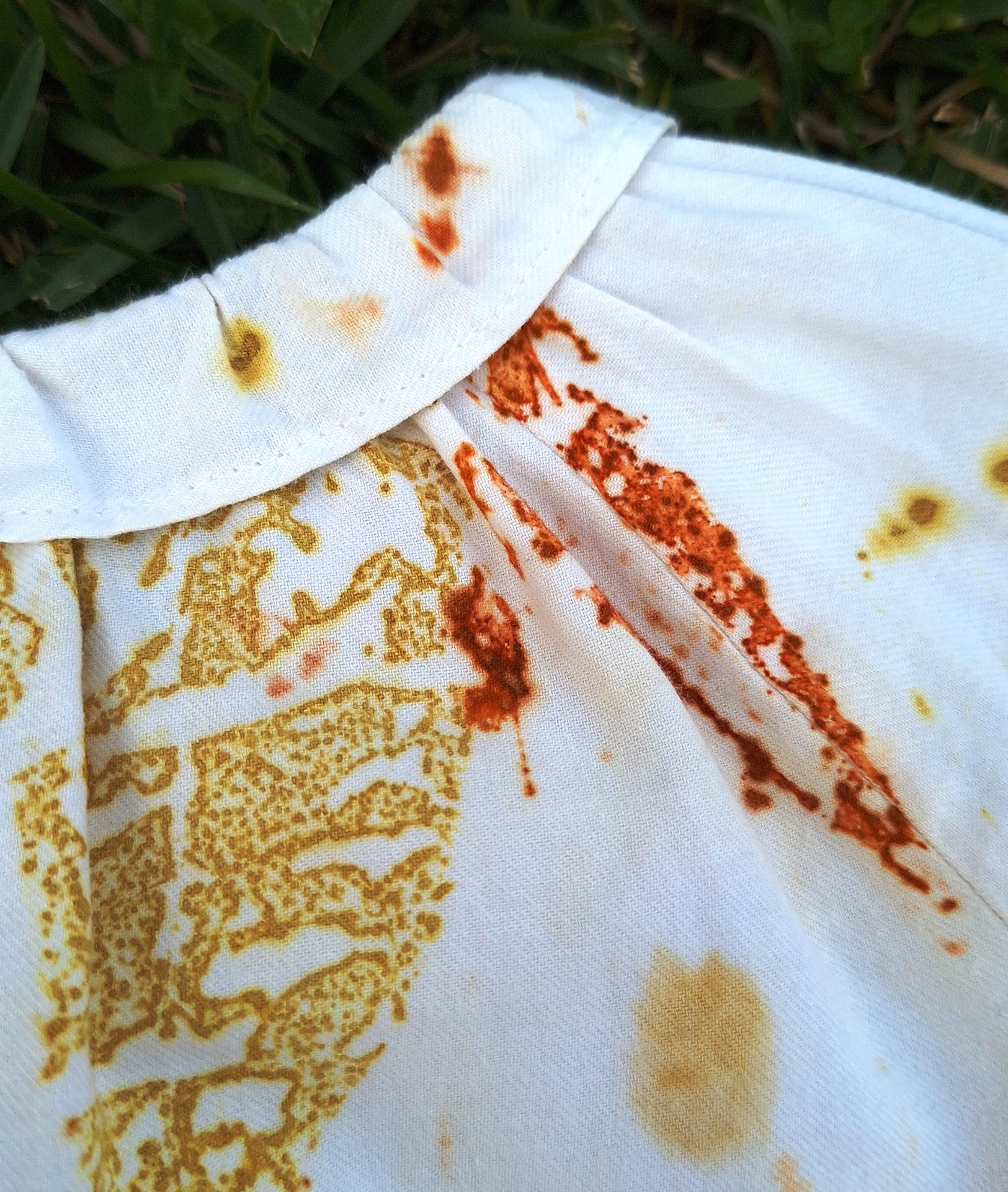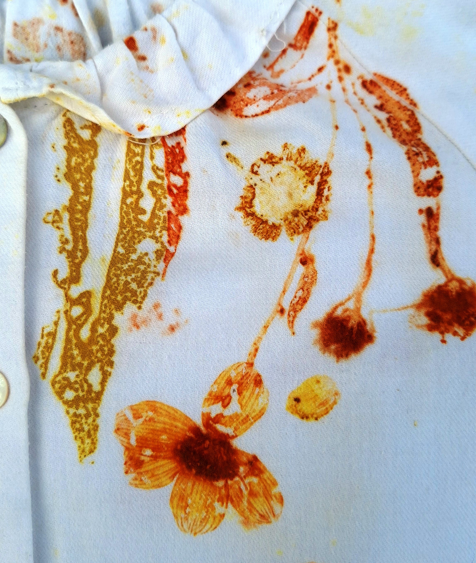 Upcycling - impressão botânica com Picão (Bidens sp.) e Espanta-lobos (Ailanthus altissima).