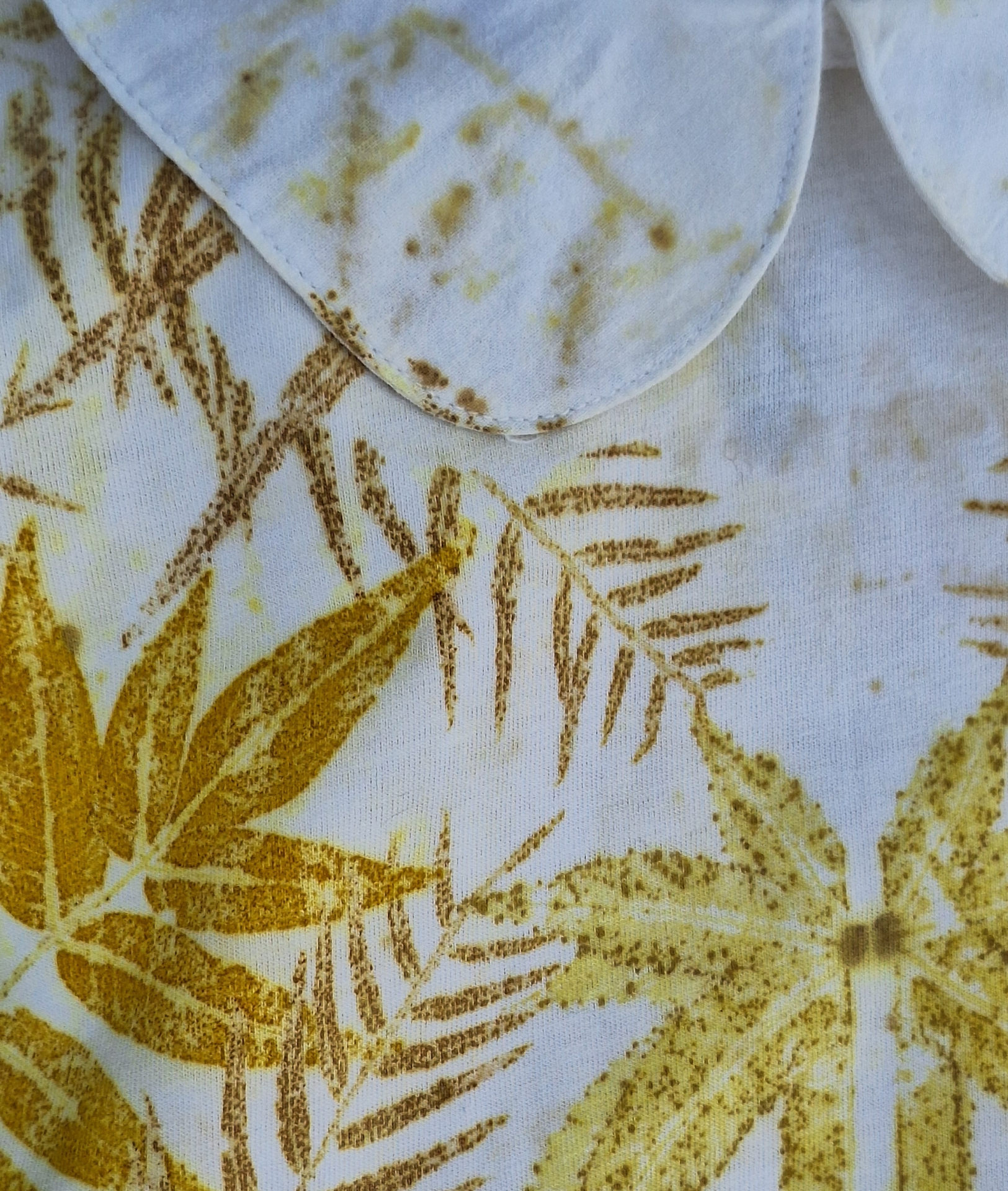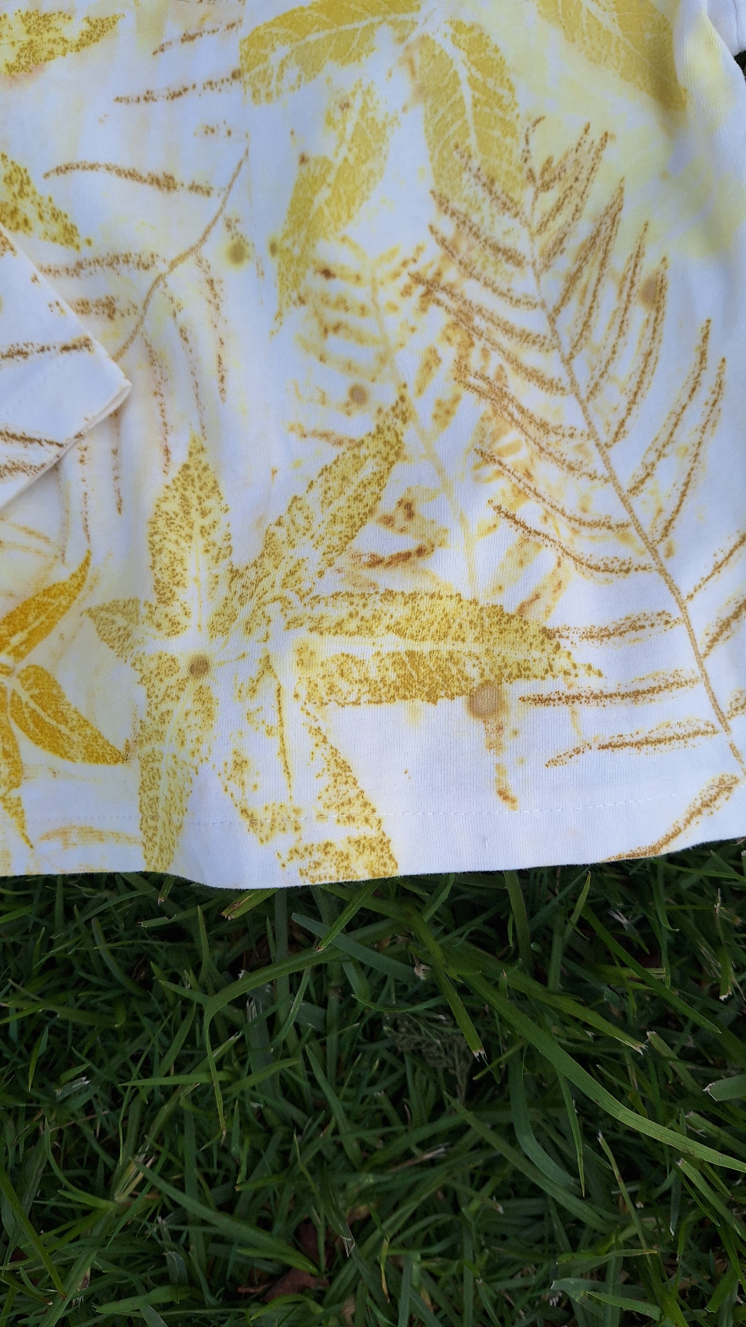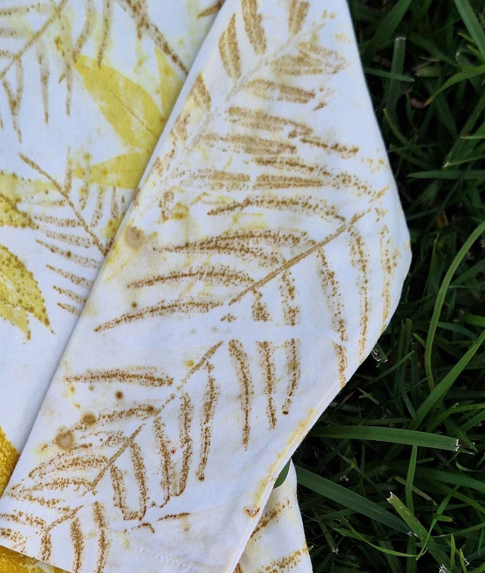 Upcycling - impressão botânica com falsa-pimenteira (Schinus molle L.) e outras plantas.