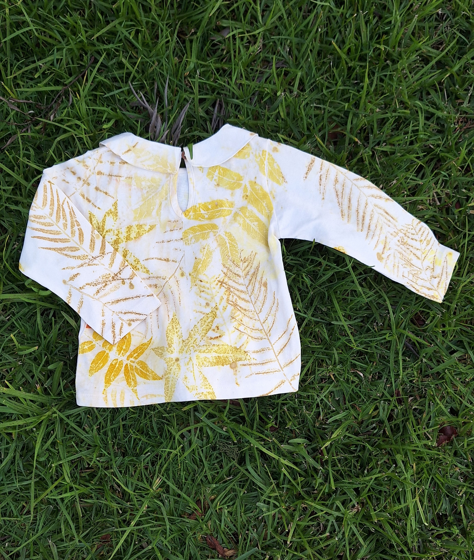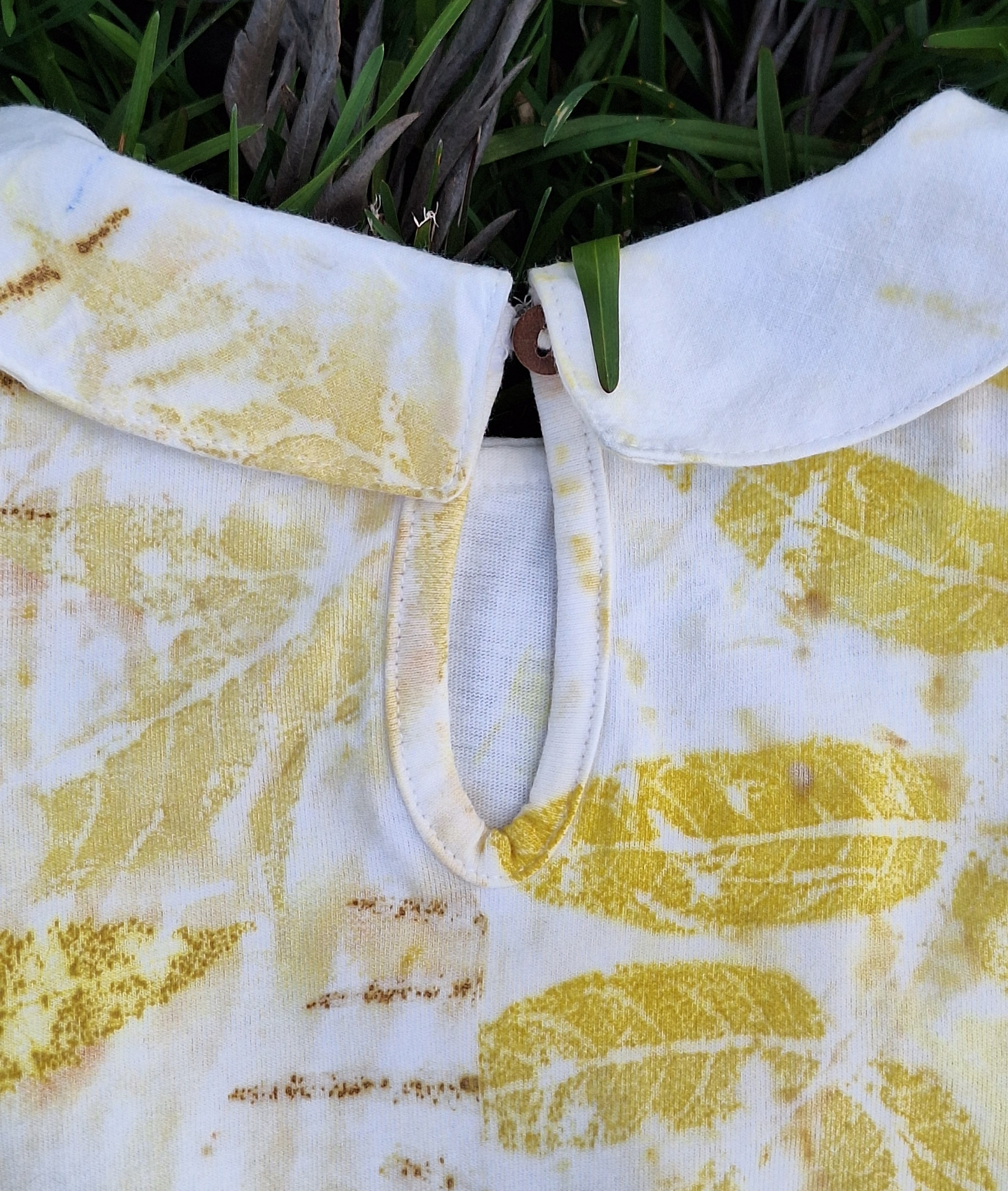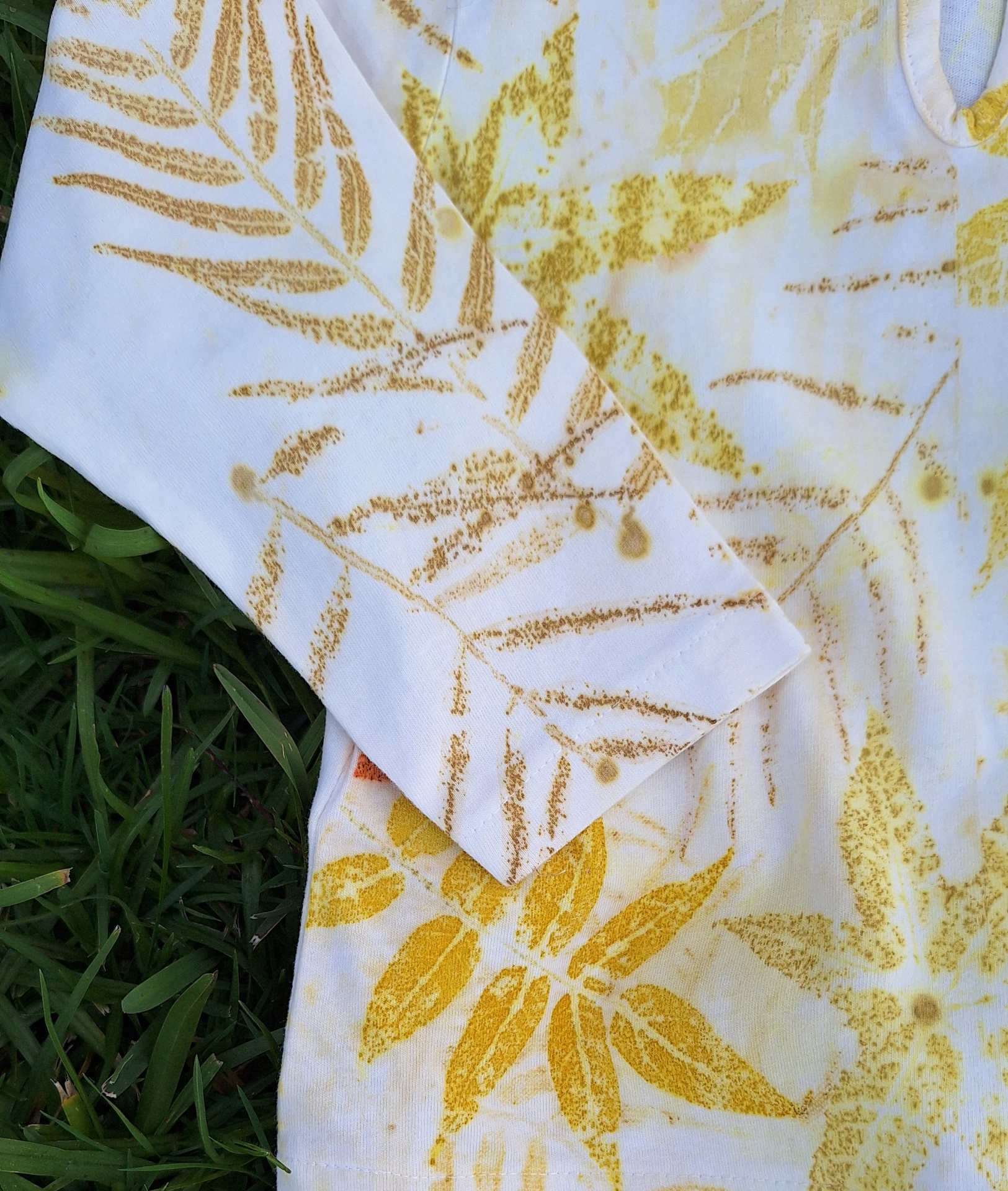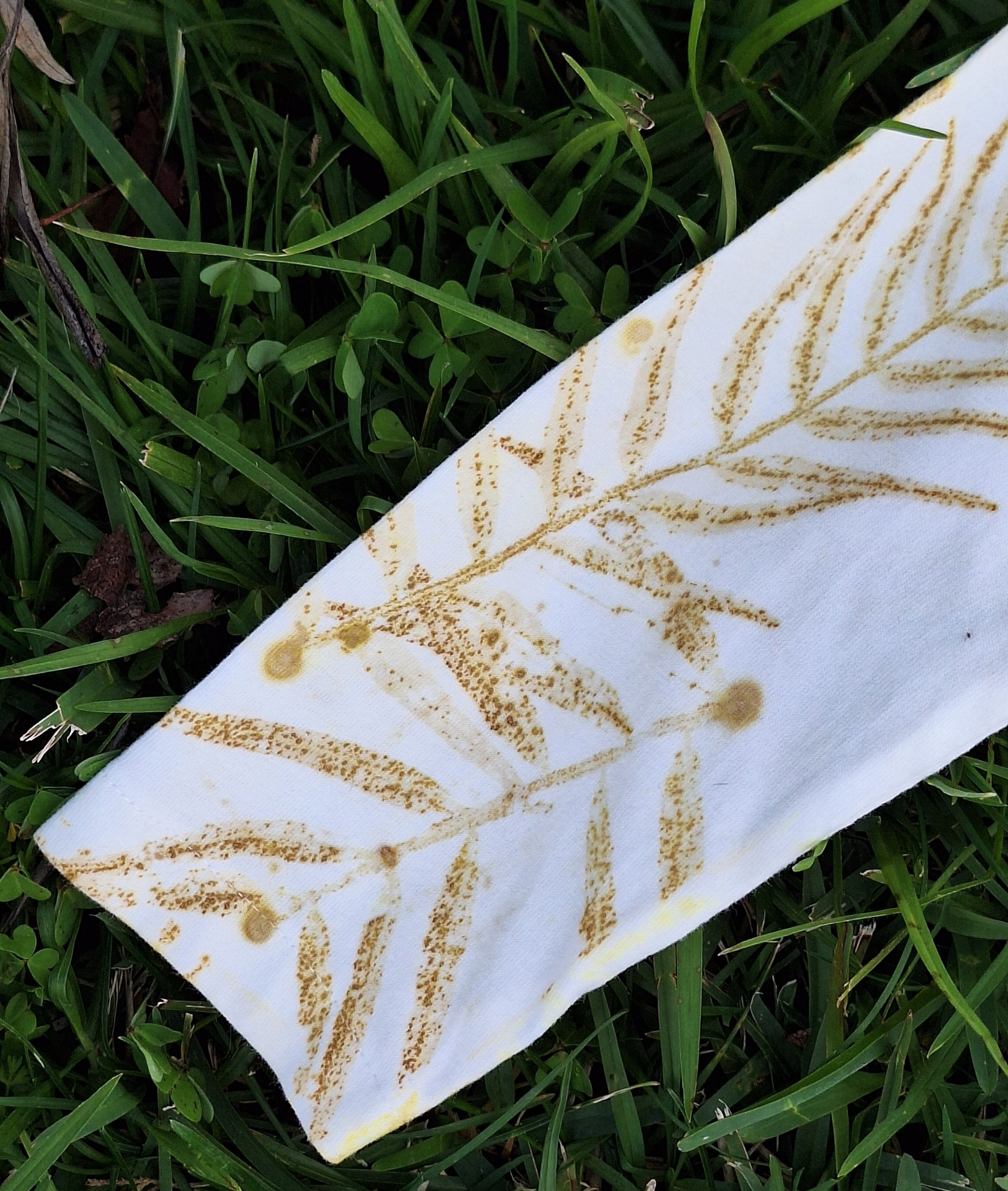 Upcycling - impressão botânica com falsa-pimenteira (Schinus molle L.) e outras plantas.