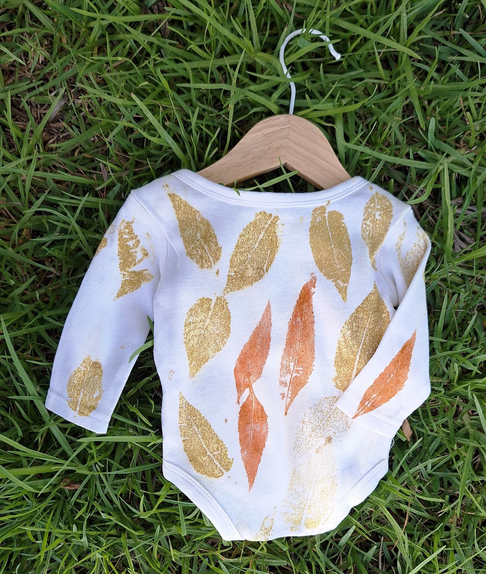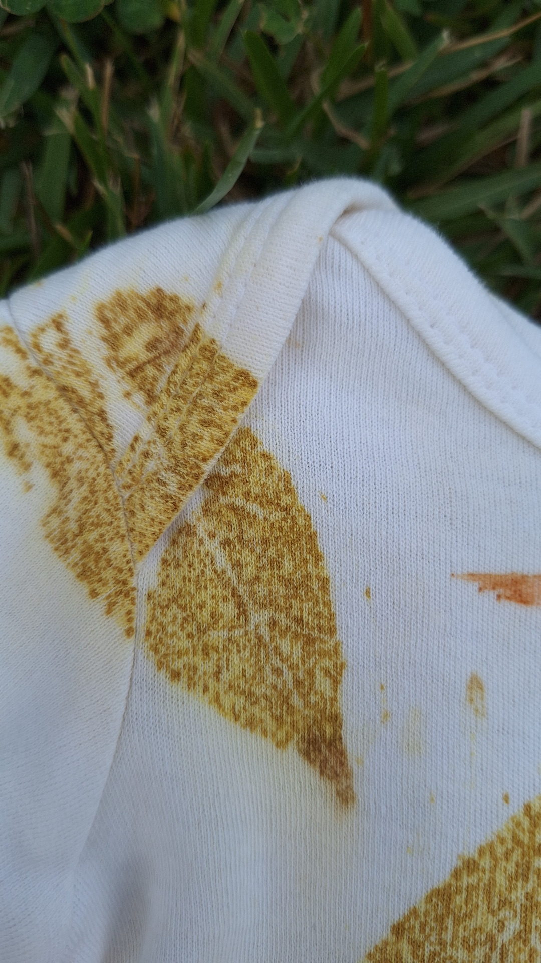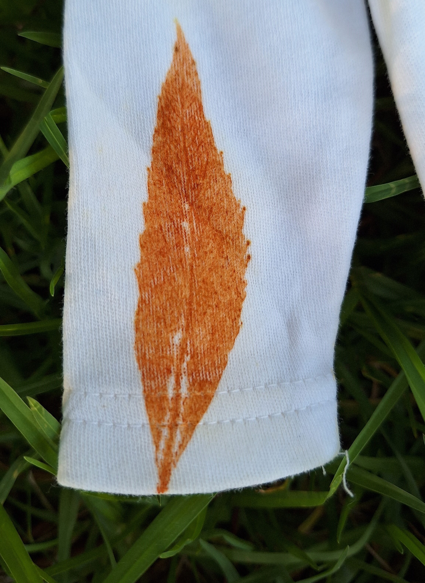 Upcycling - impressão botânica com picão (Bidens aurea) e espanta-lobos (Ailanthus altissima).