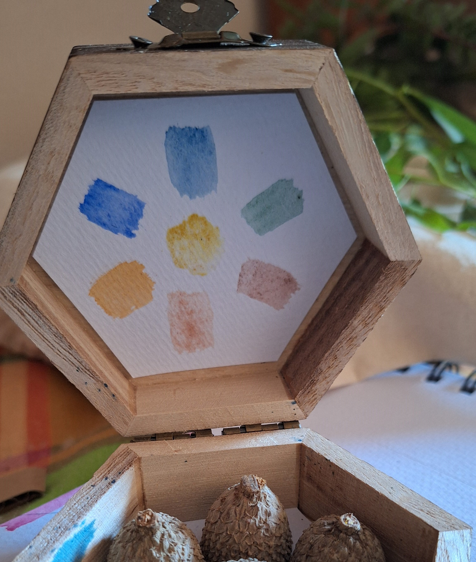 Conjunto de mini aguarelas sólidas constituído por 7 cores, incluindo a cor Azul.