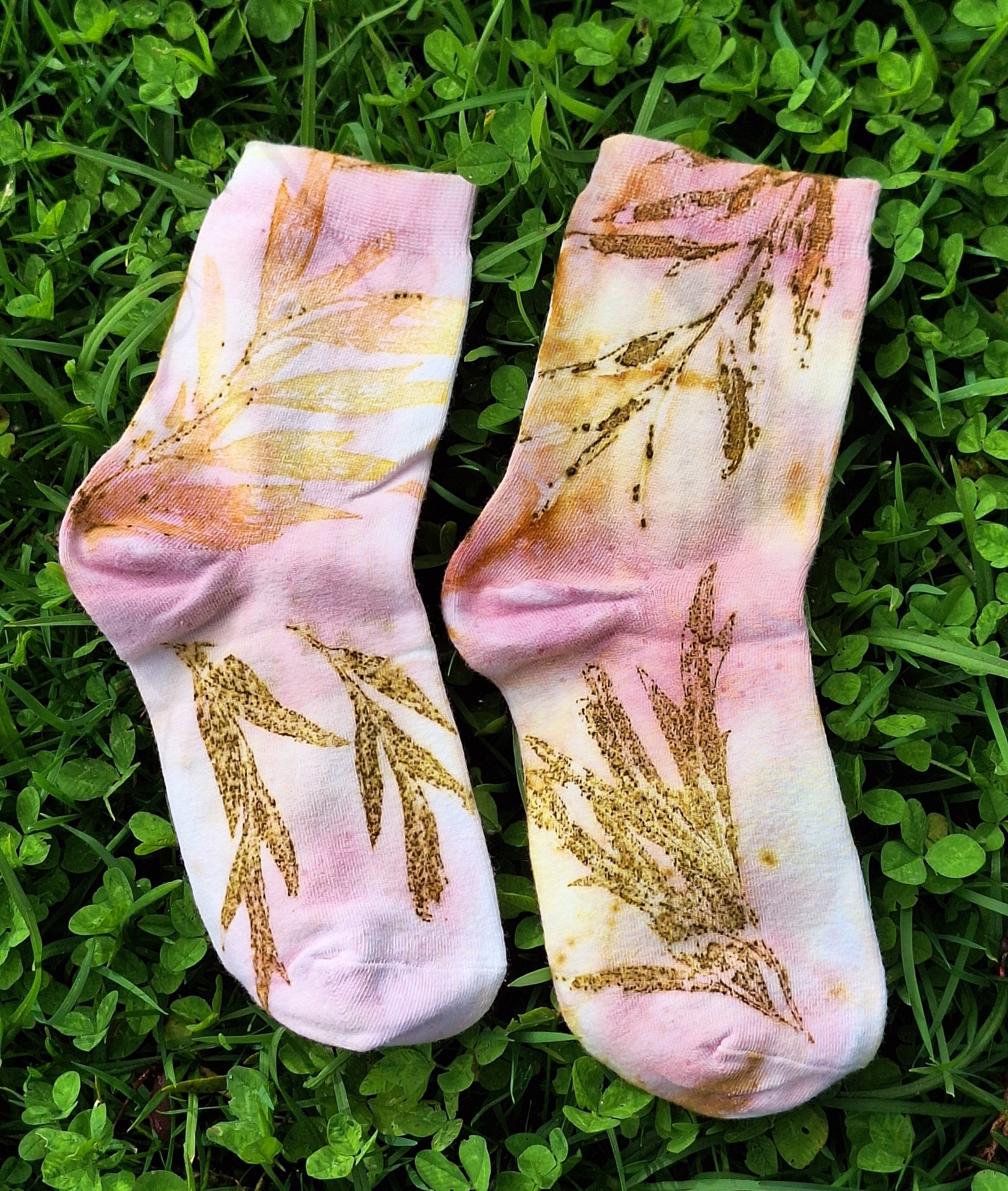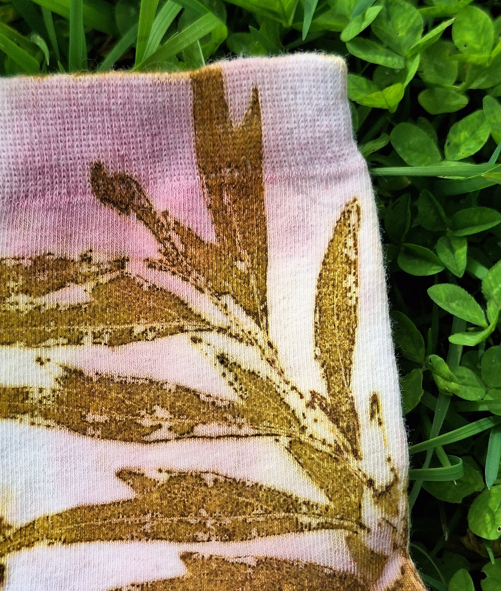 Artigo novo - Impressão botânica com grevilea (Grevillea robusta) e cochonilha (Dactylopius coccus).