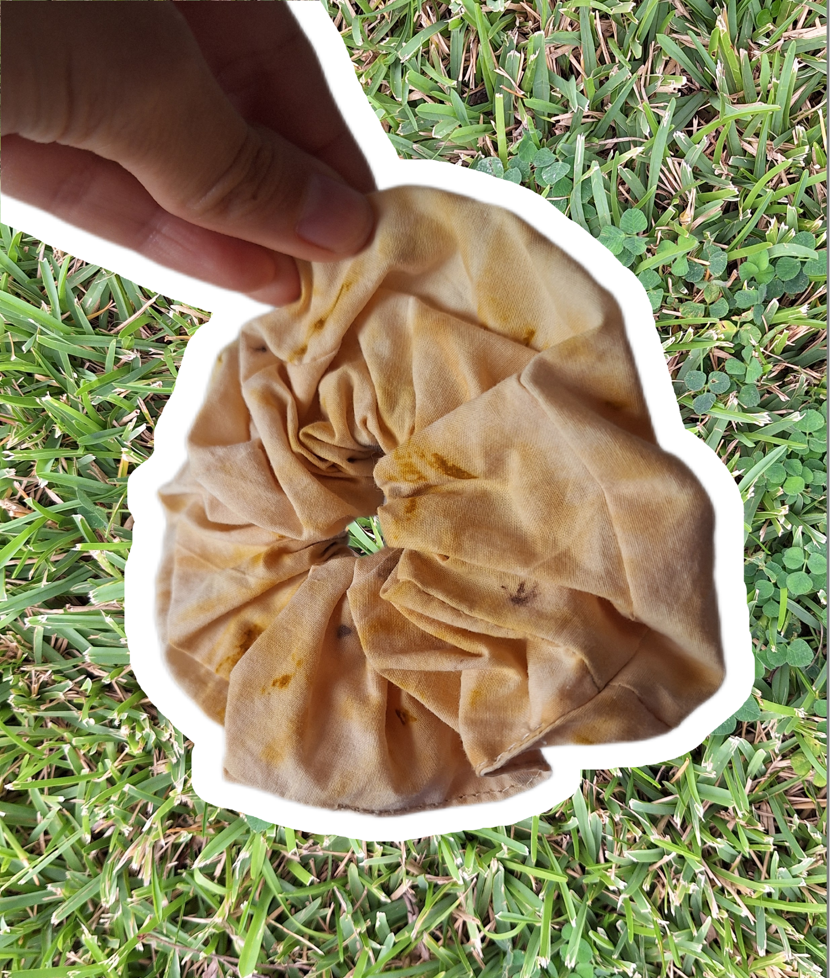Aproveitamento de tecidos com aplicação de tingimento natural e impressão botânica.